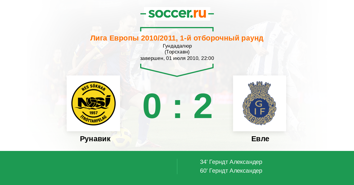 Протокол матча Рунавик против Евле