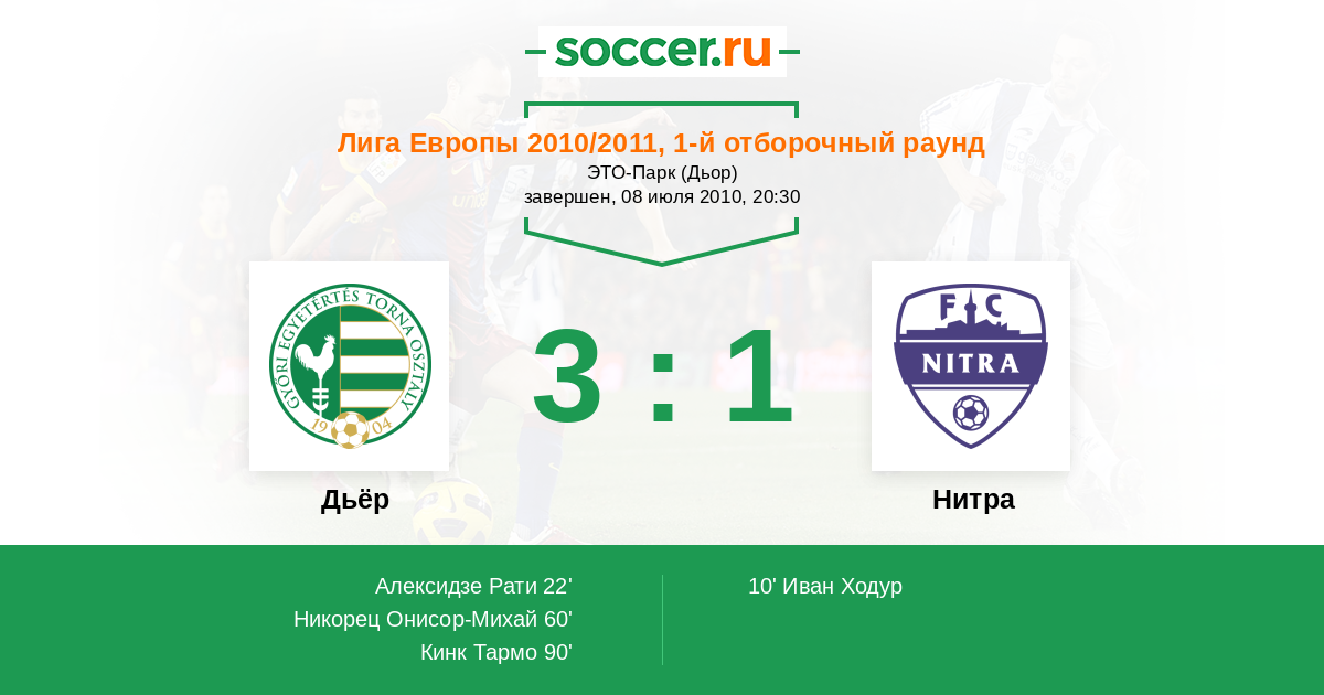 Протокол матча Дьёр против Нитра