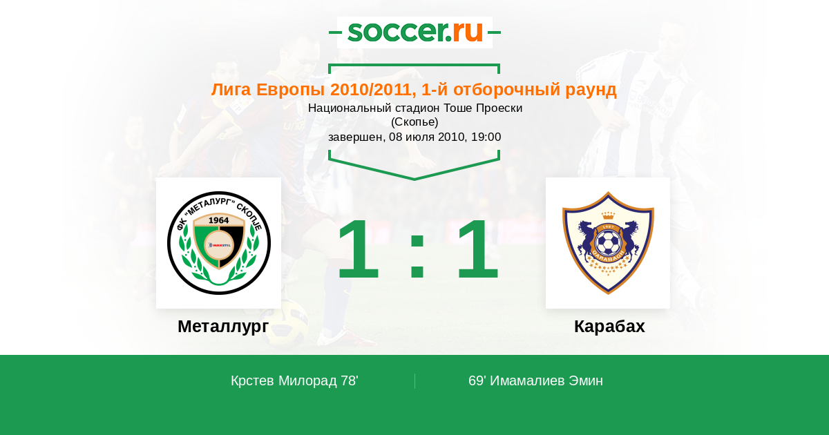Протокол матча Металлург против Карабах