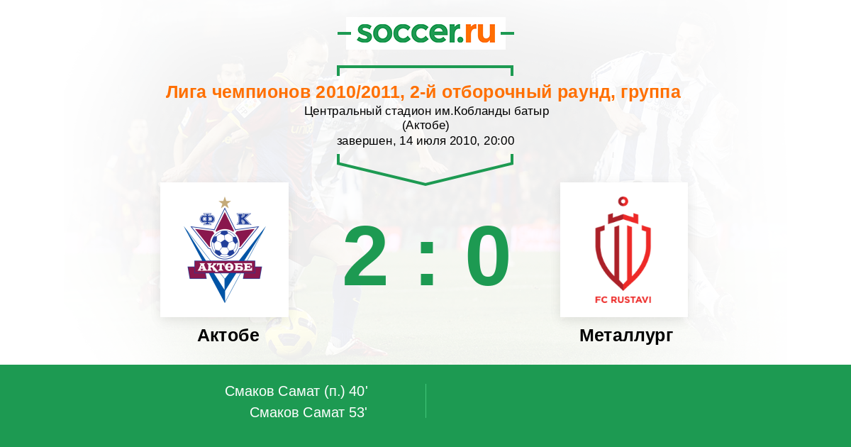 Протокол матча Актобе против Олимпи Рустави