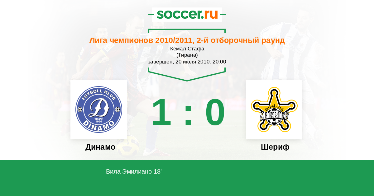 Протокол матча Динамо Сити против Шериф