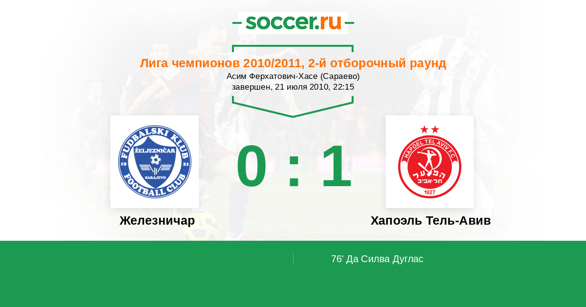 Протокол матча Железничар против Хапоэль Тель-Авив