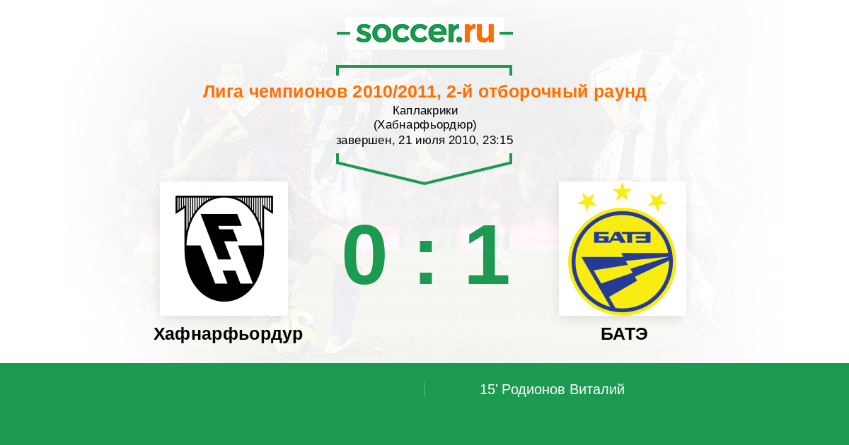 Протокол матча Хафнарфьордур против БАТЭ