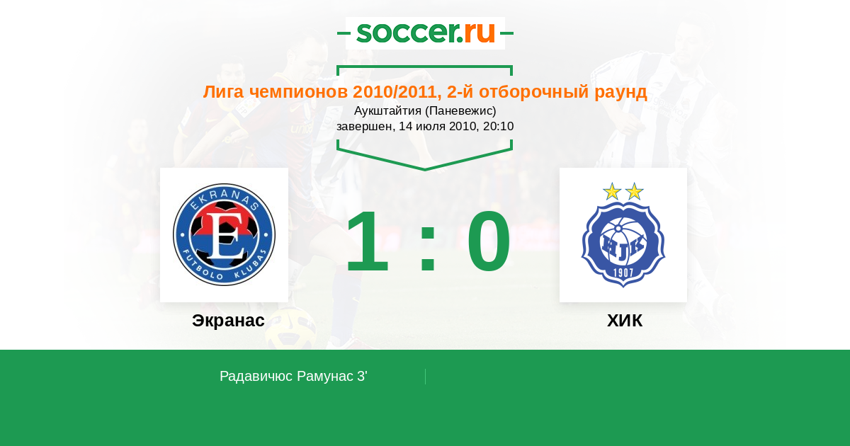 3' (1:0) Радавичюс Рамунас (7)