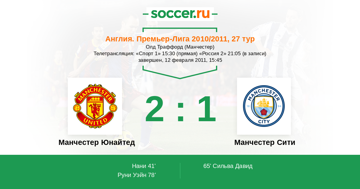 Протокол матча Манчестер Юнайтед против Манчестер Сити