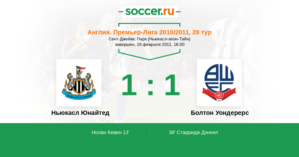 Протокол матча Ньюкасл Юнайтед против Болтон Уондерерс