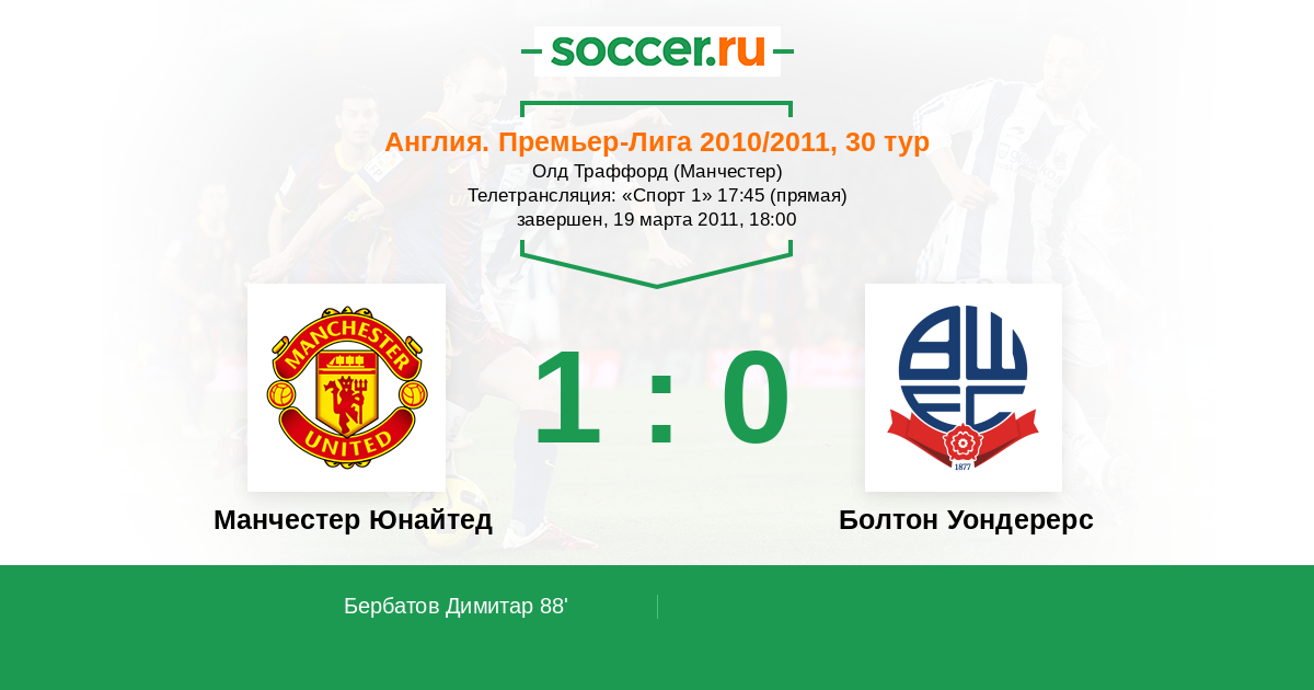 Протокол матча Манчестер Юнайтед против Болтон Уондерерс