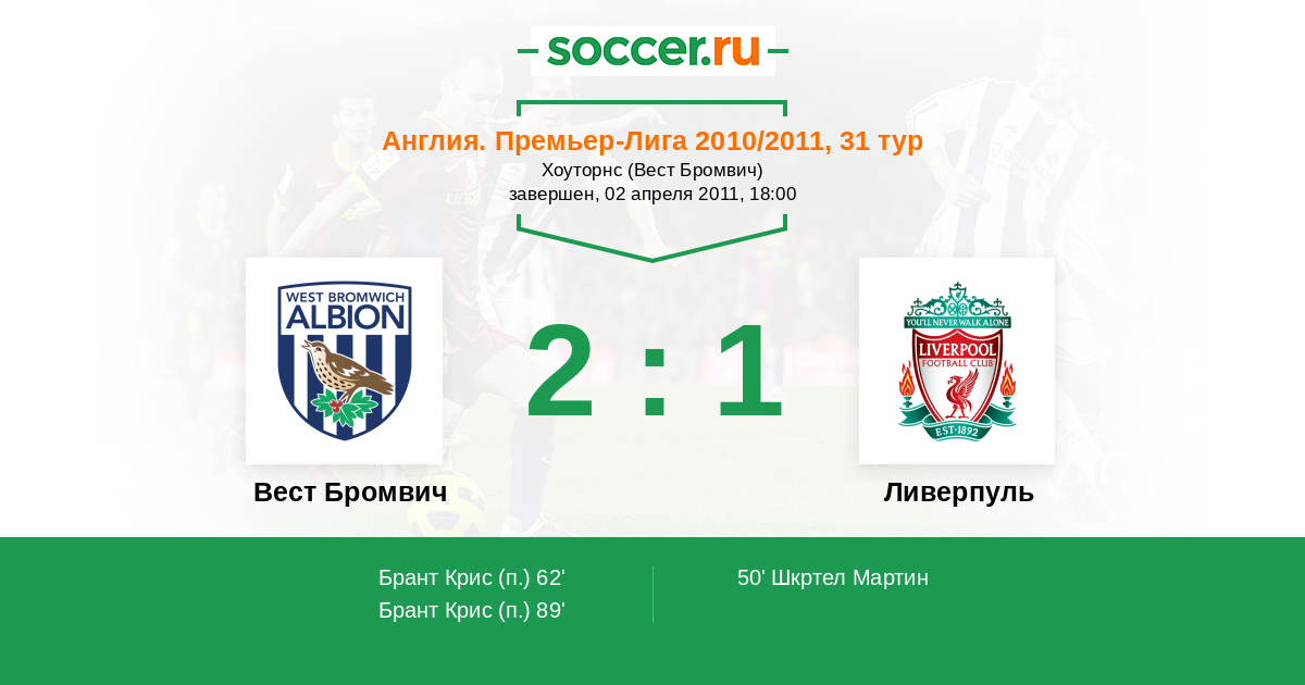 Протокол матча Вест Бромвич против Ливерпуль