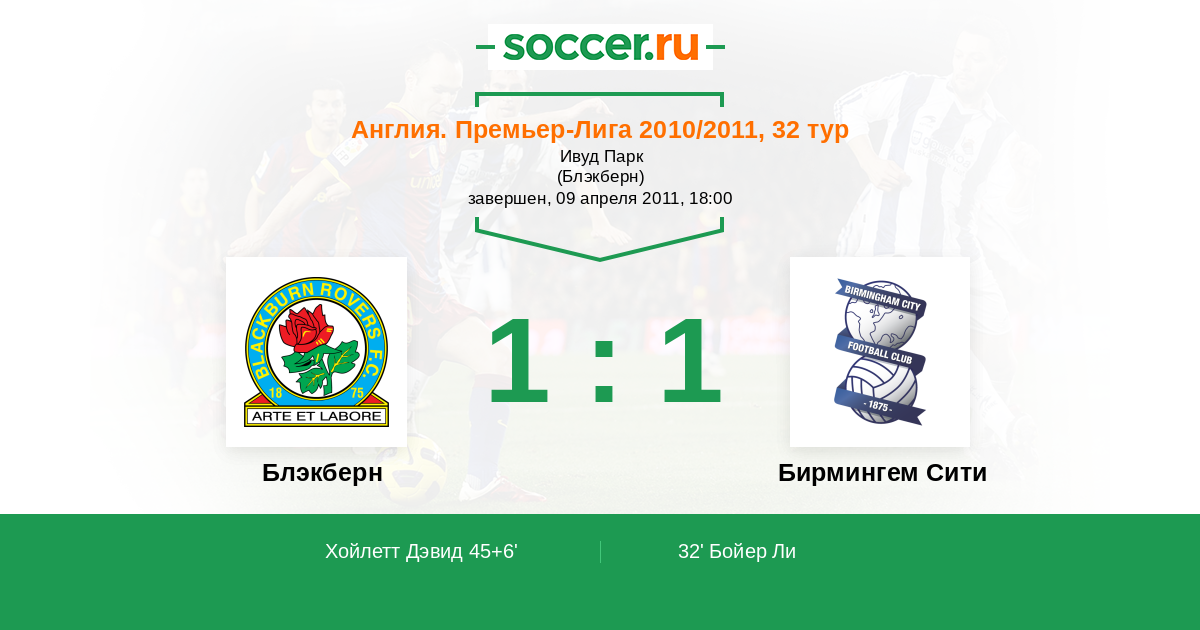 Протокол матча Блэкберн против Бирмингем Сити