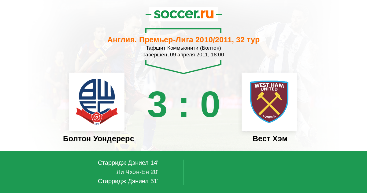 Протокол матча Болтон Уондерерс против Вест Хэм