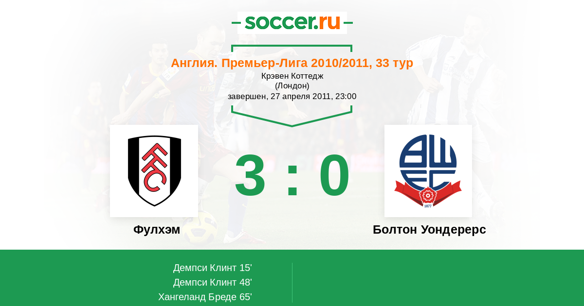 65' (3:0) Хангеланд Бреде (5) (Мёрфи Дэнни (13))