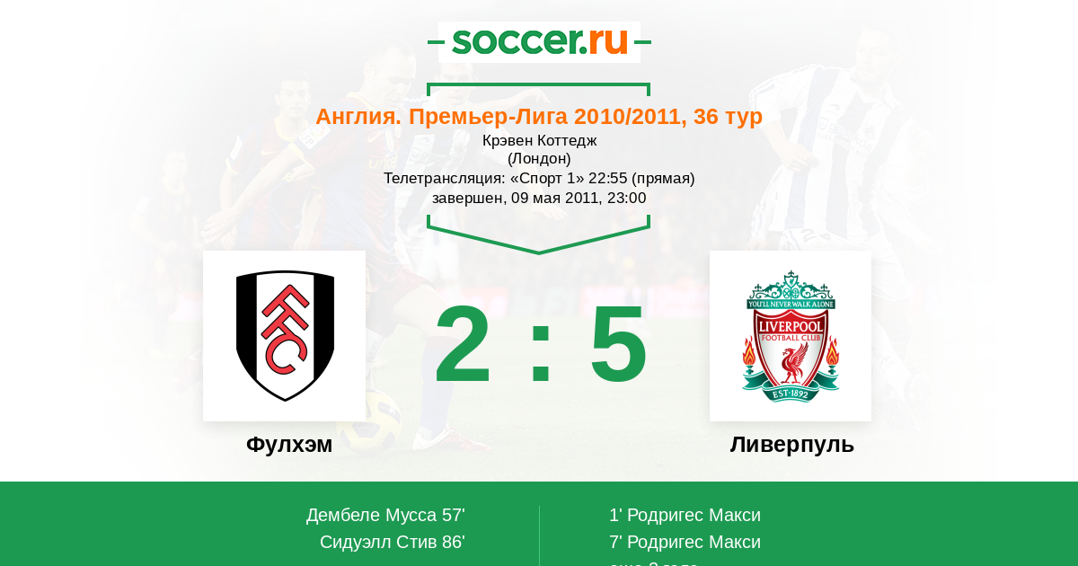 Протокол матча Фулхэм против Ливерпуль