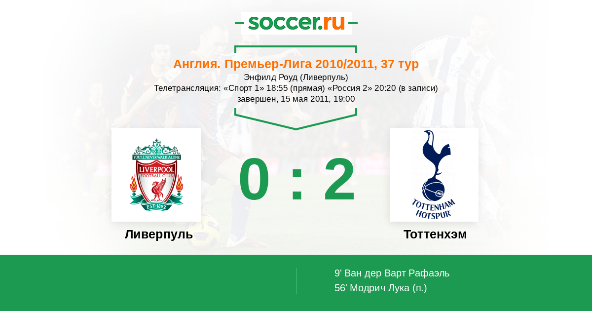 Протокол матча Ливерпуль против Тоттенхэм