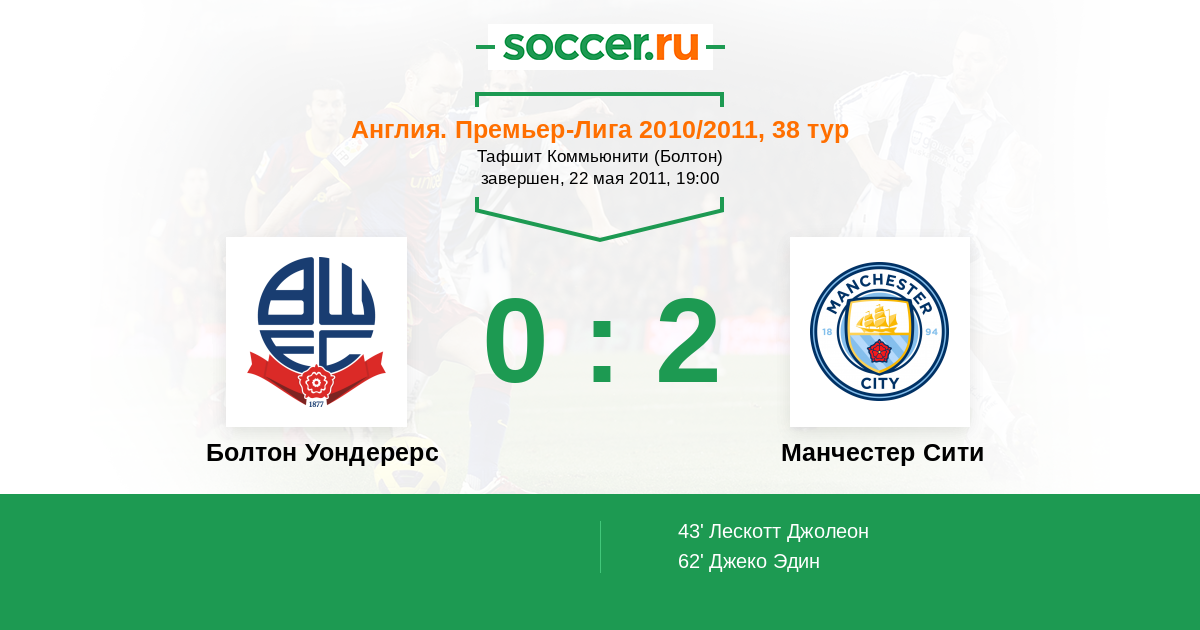 Протокол матча Болтон Уондерерс против Манчестер Сити