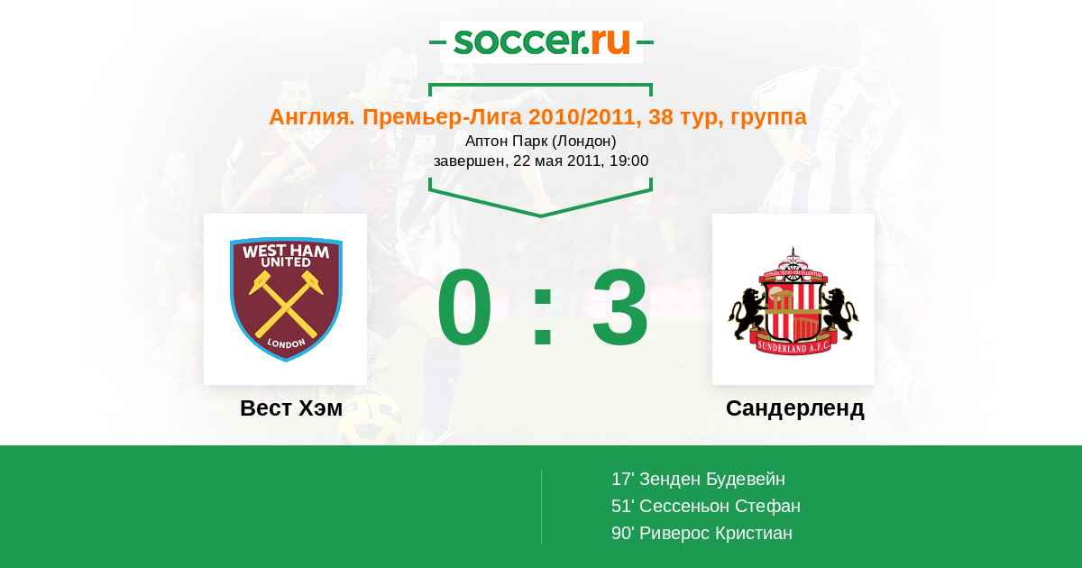 Протокол матча Вест Хэм против Сандерленд