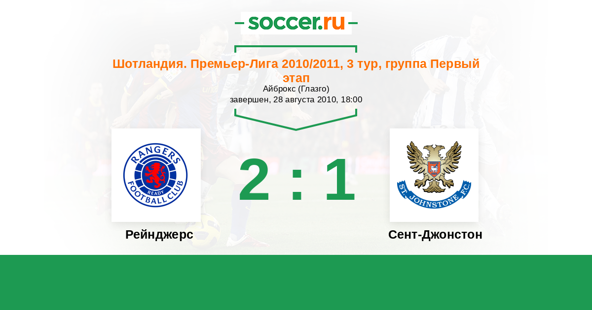 Шотландия. Премьер-Лига 27.02.2011 Рейнджерс Логотип футбольный клуб Рейнджерс (Глазго) 4:0 Логотип футбольный клуб Сент-Джонстон (Перт) Сент-Джонстон