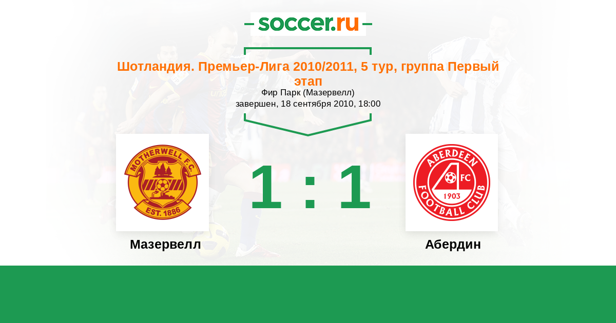 Шотландия. Премьер-Лига 02.04.2011 Мазервелл Логотип футбольный клуб Мазервелл 2:1 Логотип футбольный клуб Абердин Абердин