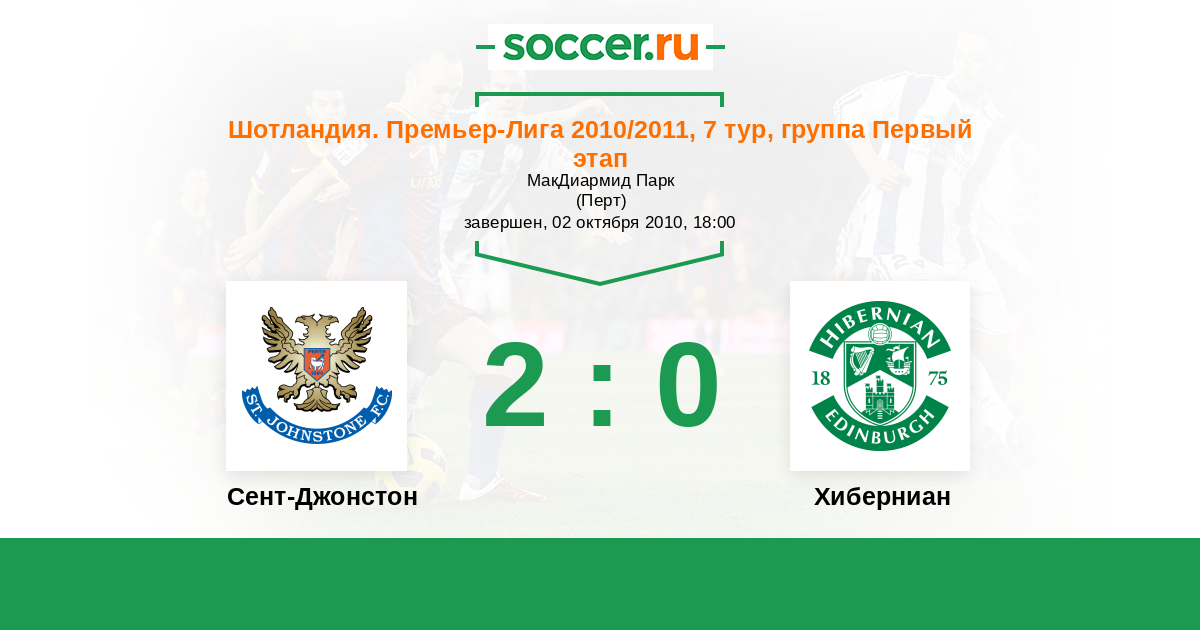 Шотландия. Премьер-Лига 05.03.2011 Сент-Джонстон Логотип футбольный клуб Сент-Джонстон (Перт) 1:1 Логотип футбольный клуб Хиберниан (Эдинбург) Хиберниан
