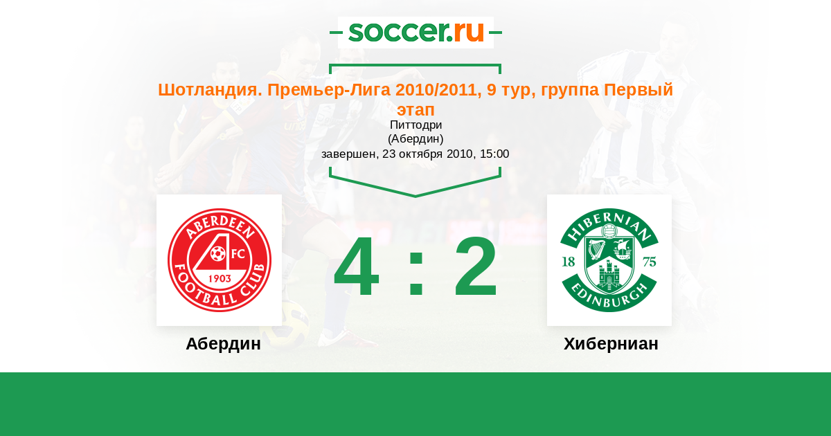 Шотландия. Премьер-Лига 26.12.2010 Хиберниан Логотип футбольный клуб Хиберниан (Эдинбург) 1:2 Логотип футбольный клуб Абердин Абердин