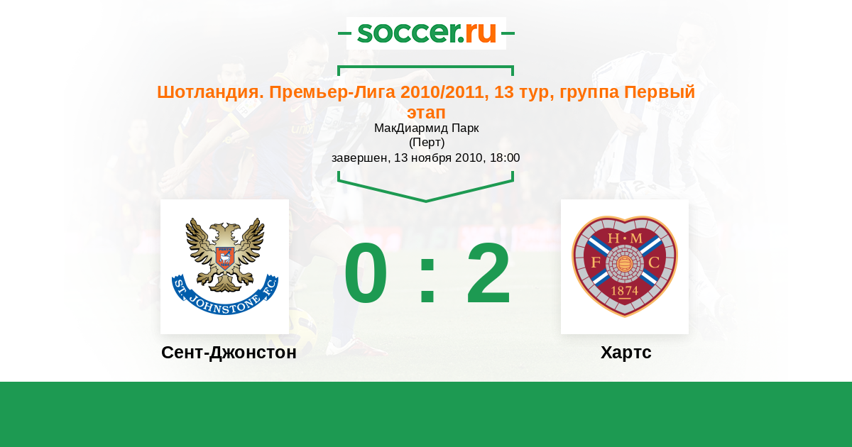 Шотландия. Премьер-Лига 25.09.2011 Сент-Джонстон Логотип футбольный клуб Сент-Джонстон (Перт) 2:0 Логотип футбольный клуб Хартс (Эдинбург) Хартс