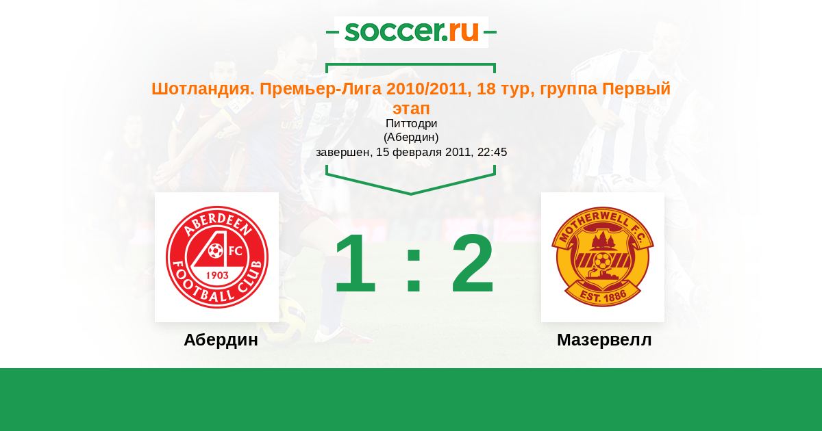 Шотландия. Премьер-Лига 02.04.2011 Мазервелл Логотип футбольный клуб Мазервелл 2:1 Логотип футбольный клуб Абердин Абердин