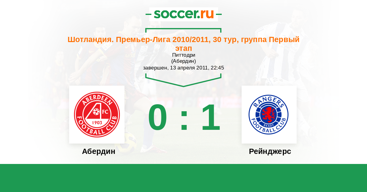 Шотландия. Премьер-Лига 07.04.2010 Рейнджерс Логотип футбольный клуб Рейнджерс (Глазго) 3:1 Логотип футбольный клуб Абердин Абердин