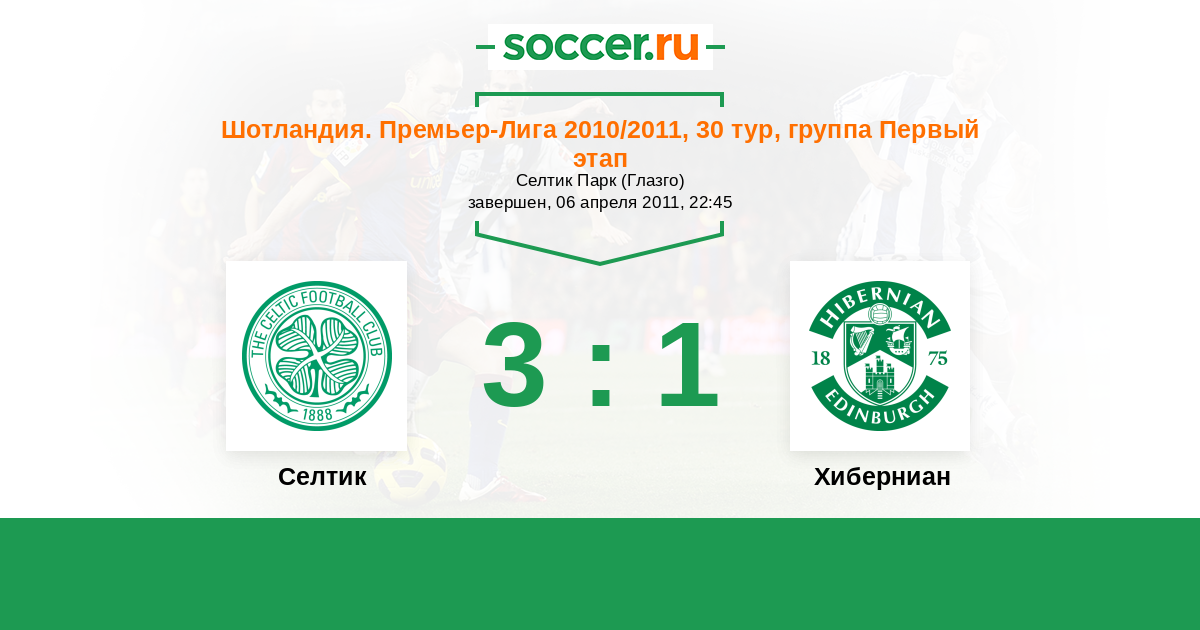 Шотландия. Премьер-Лига 24.07.2011 Хиберниан Логотип футбольный клуб Хиберниан (Эдинбург) 0:2 Логотип футбольный клуб Селтик (Глазго) Селтик