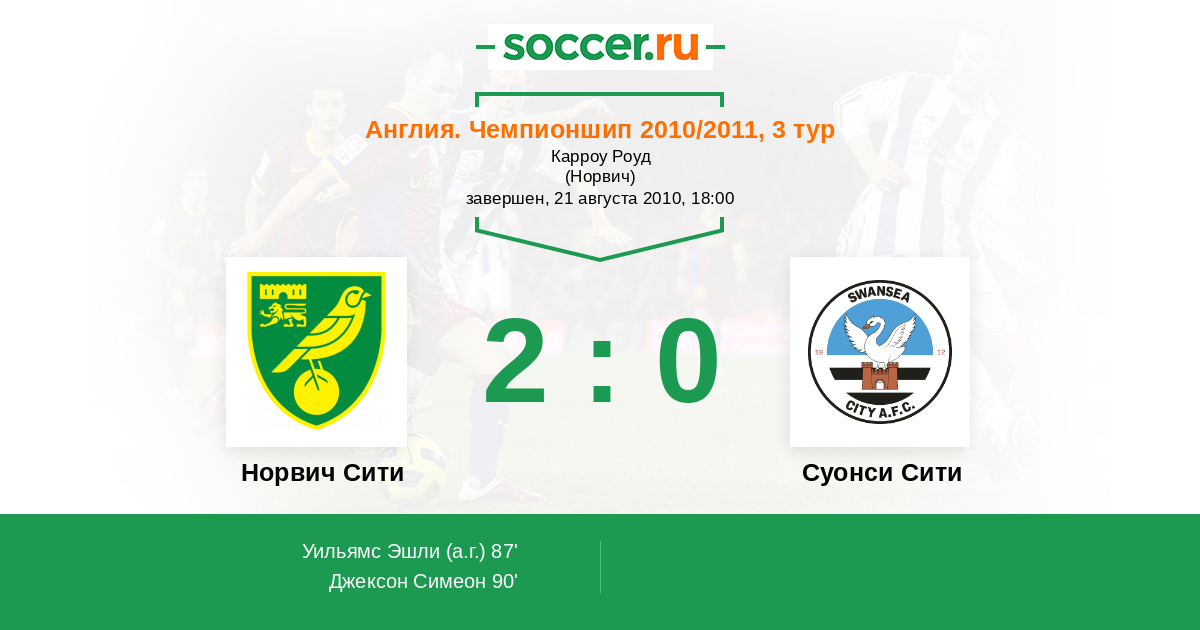 Протокол матча Норвич Сити против Суонси Сити