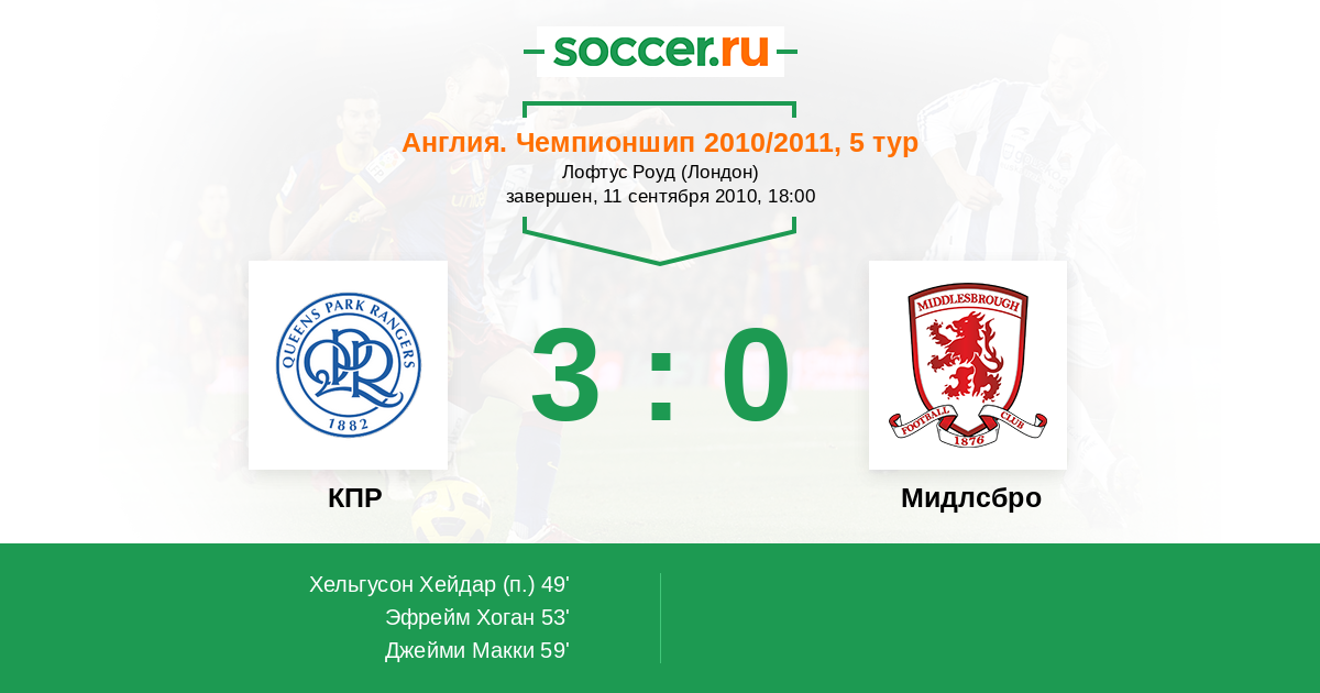 Протокол матча КПР против Мидлсбро