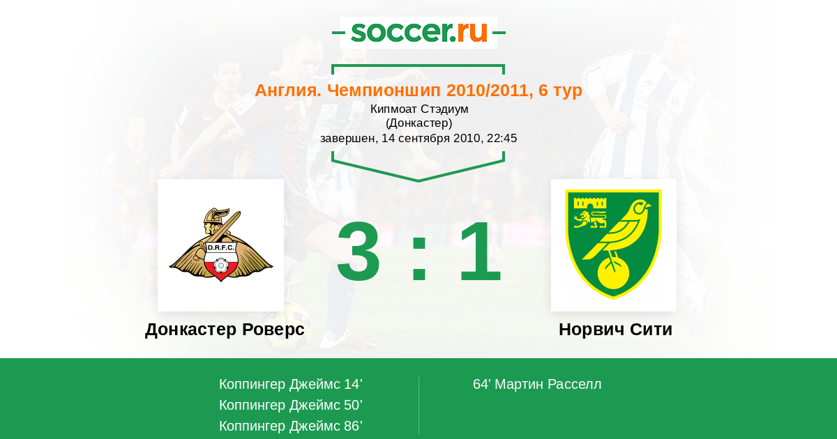 Протокол матча Донкастер Роверс против Норвич Сити