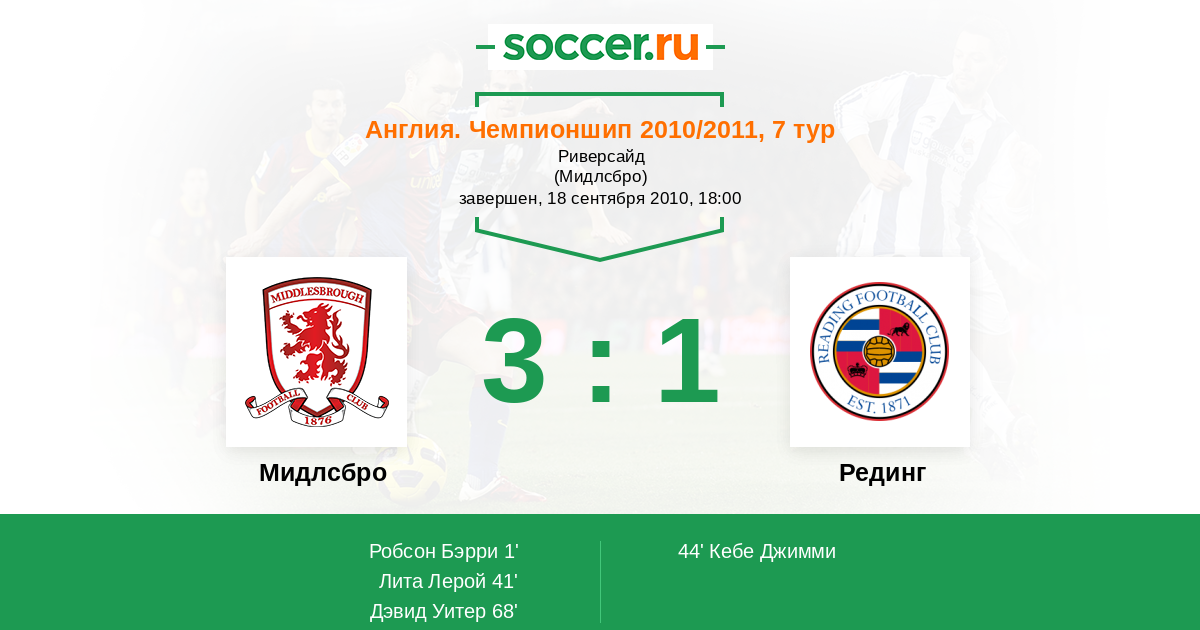 1' (1:0) Робсон Бэрри (17) (Бэйли Ник (10))