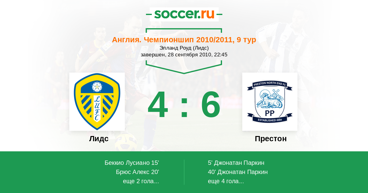 Протокол матча Лидс против Престон