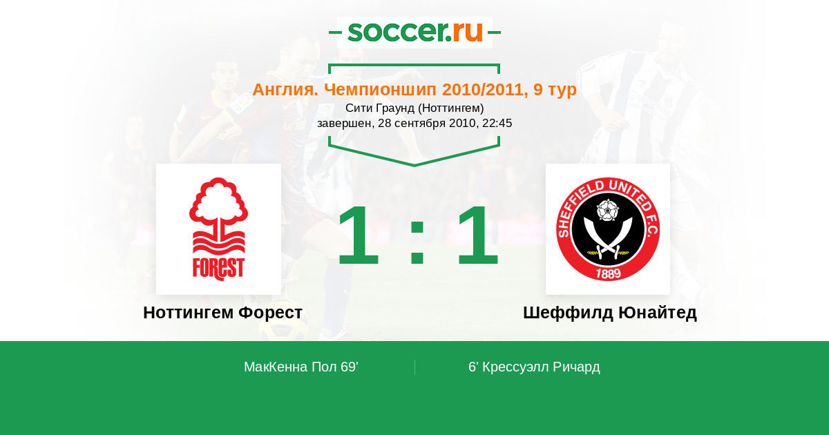 Протокол матча Ноттингем Форест против Шеффилд Юнайтед