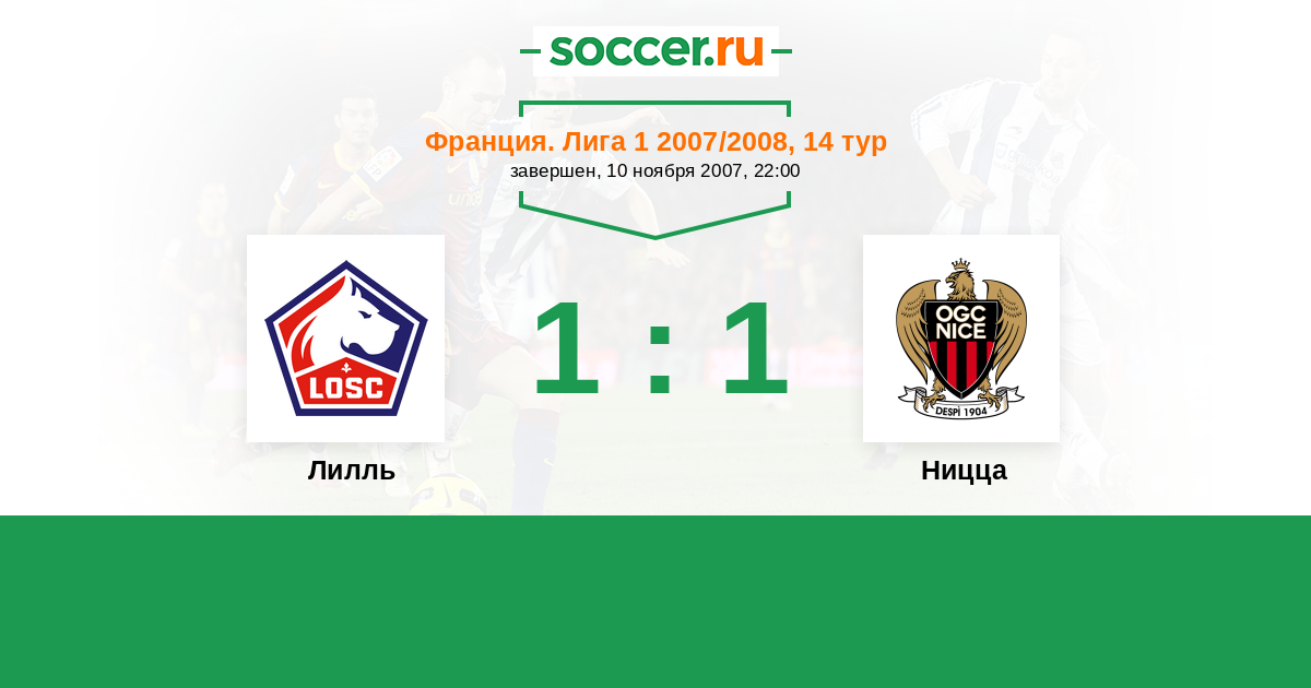 Франция. Лига 1 05.04.2008 Ницца Логотип футбольный клуб Ницца 0:0 Логотип футбольный клуб Лилль Лилль