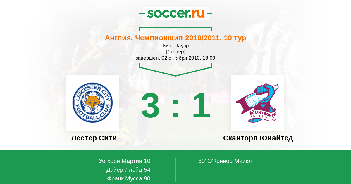 Протокол матча Лестер Сити против Сканторп Юнайтед