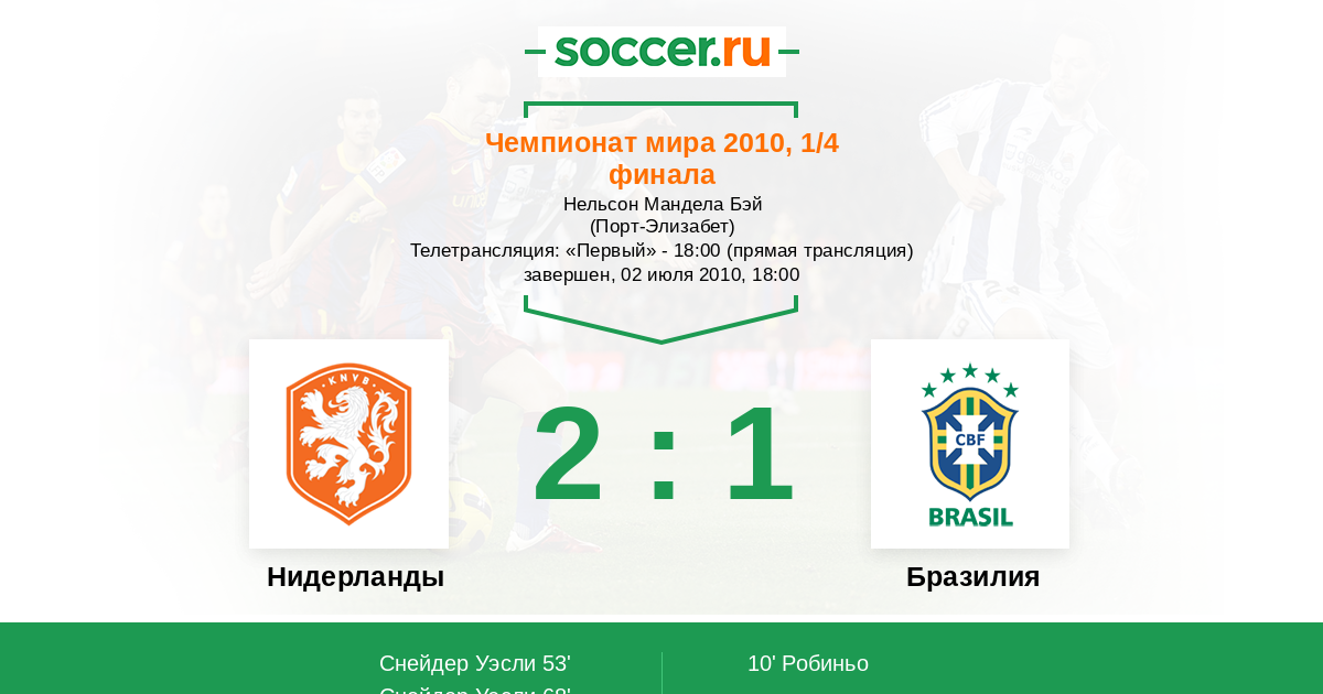 Протокол матча Нидерланды против Бразилия