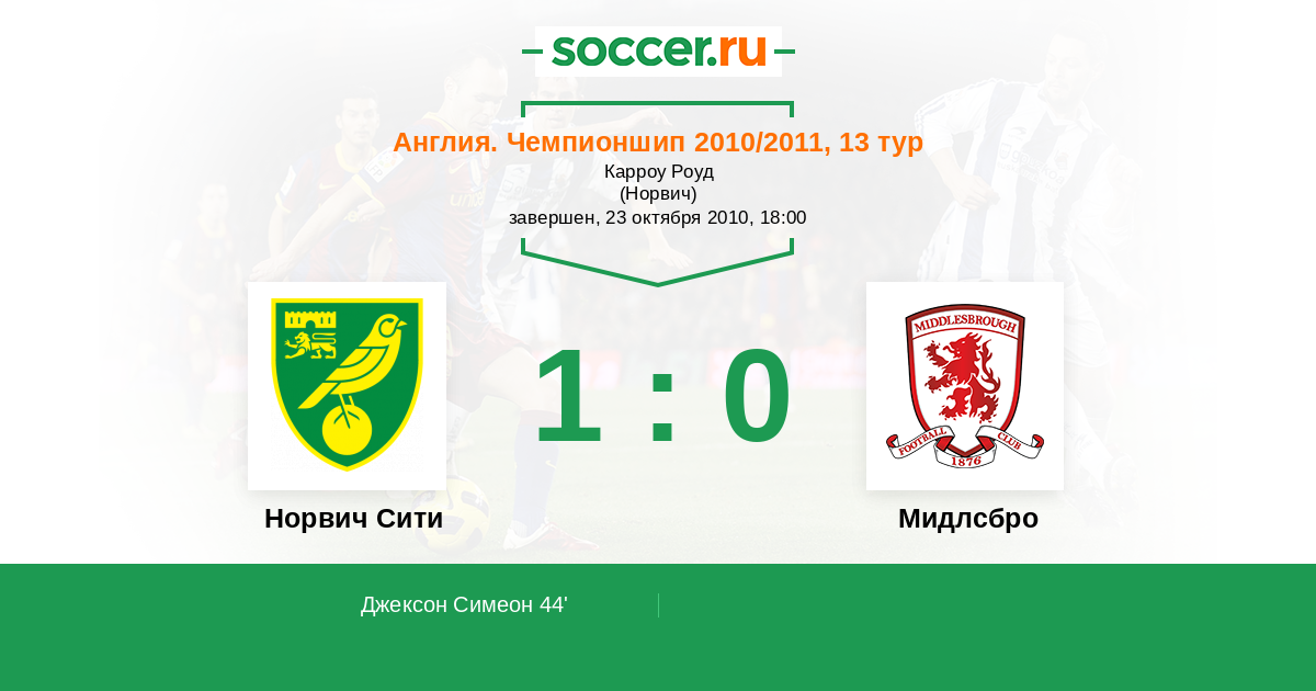 44' (1:0) Джексон Симеон (10) (Холт Грант (9))