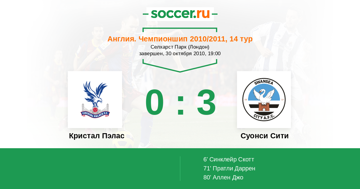 Протокол матча Кристал Пэлас против Суонси Сити