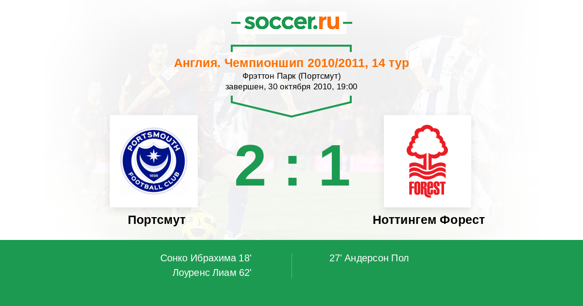 Протокол матча Портсмут против Ноттингем Форест
