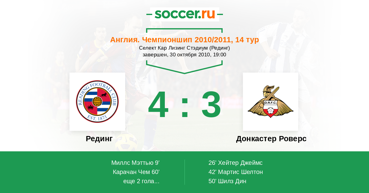 Протокол матча Рединг против Донкастер Роверс