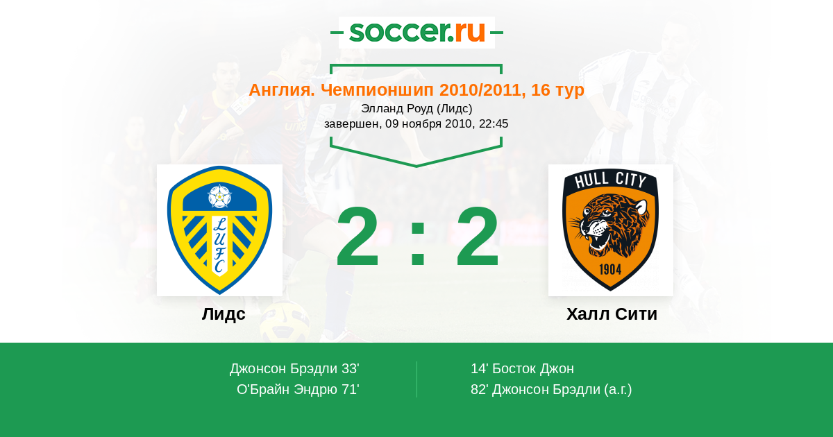 82' (2:2) Автогол Джонсон Брэдли (16)