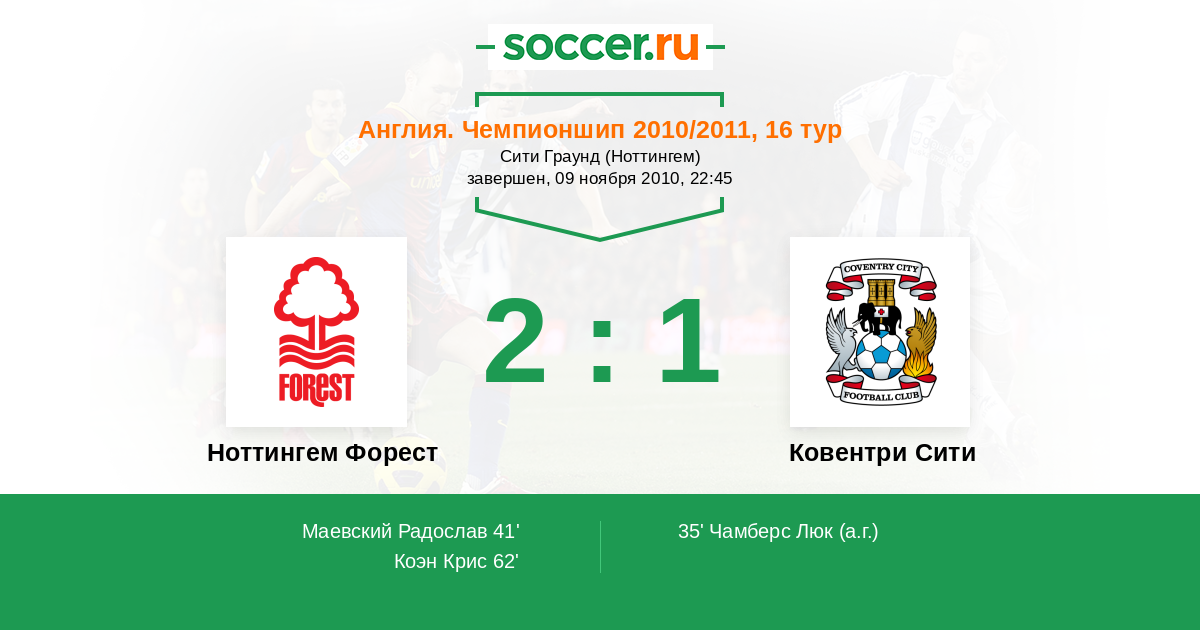 Протокол матча Ноттингем Форест против Ковентри Сити