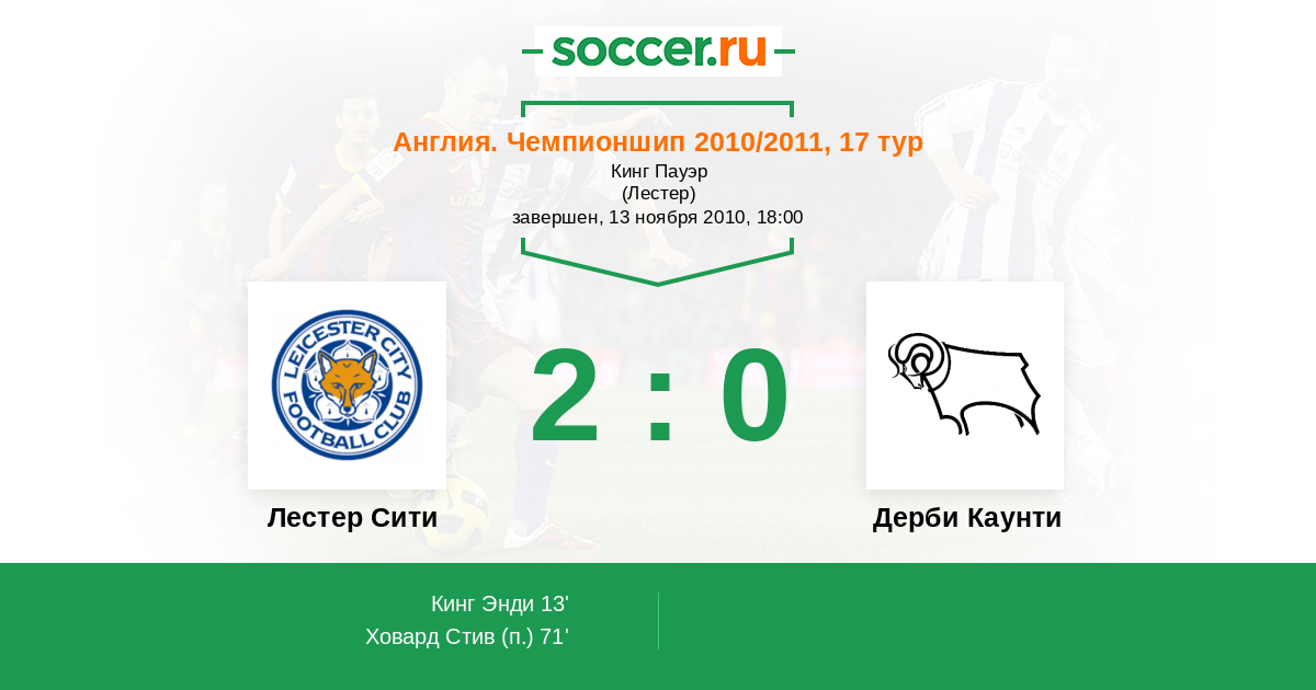 Протокол матча Лестер Сити против Дерби Каунти