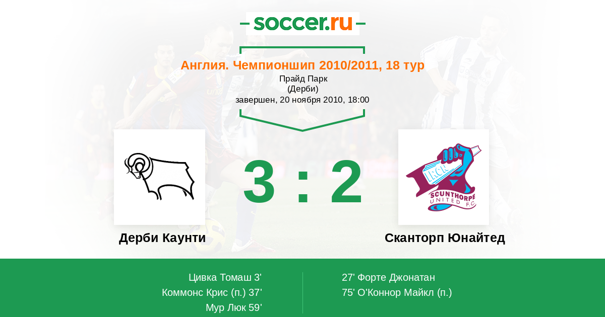 Протокол матча Дерби Каунти против Сканторп Юнайтед