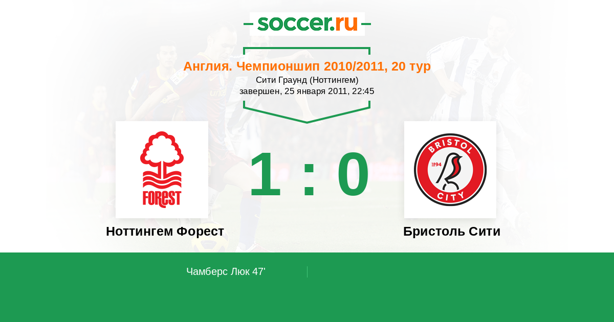 Протокол матча Ноттингем Форест против Бристоль Сити