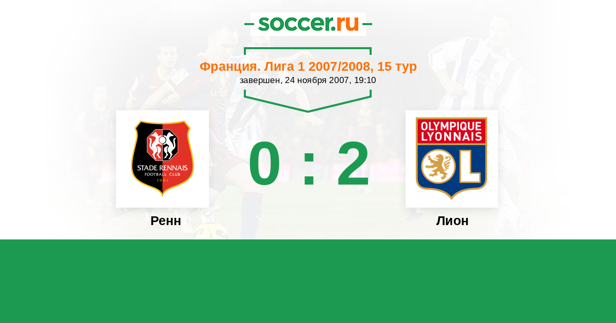 Франция. Лига 1 12.04.2008 Лион Логотип футбольный клуб Лион 1:1 Логотип футбольный клуб Ренн Ренн