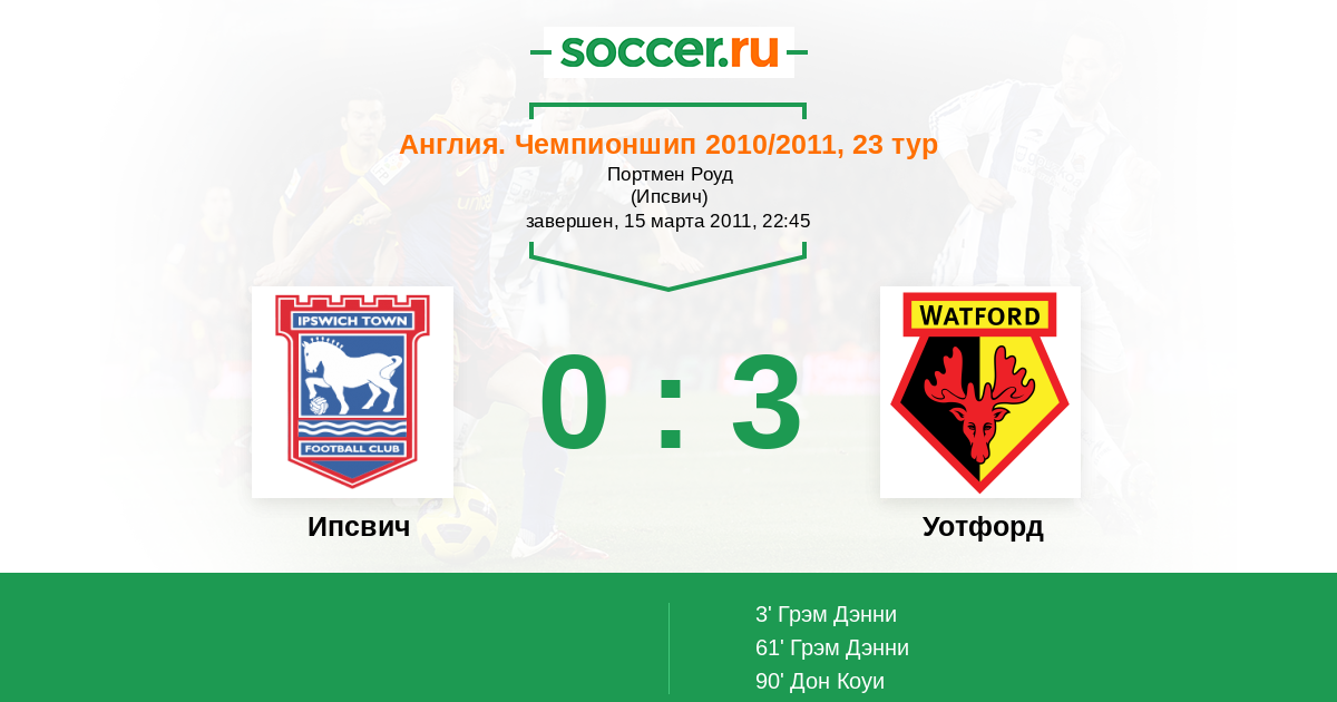Протокол матча Ипсвич против Уотфорд