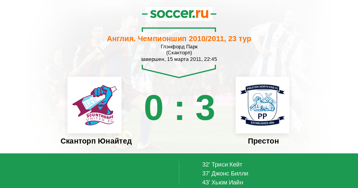 Протокол матча Сканторп Юнайтед против Престон