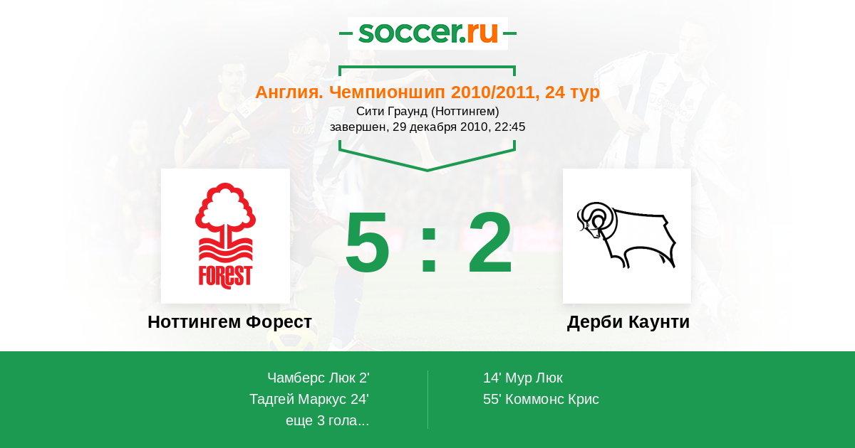 Протокол матча Ноттингем Форест против Дерби Каунти