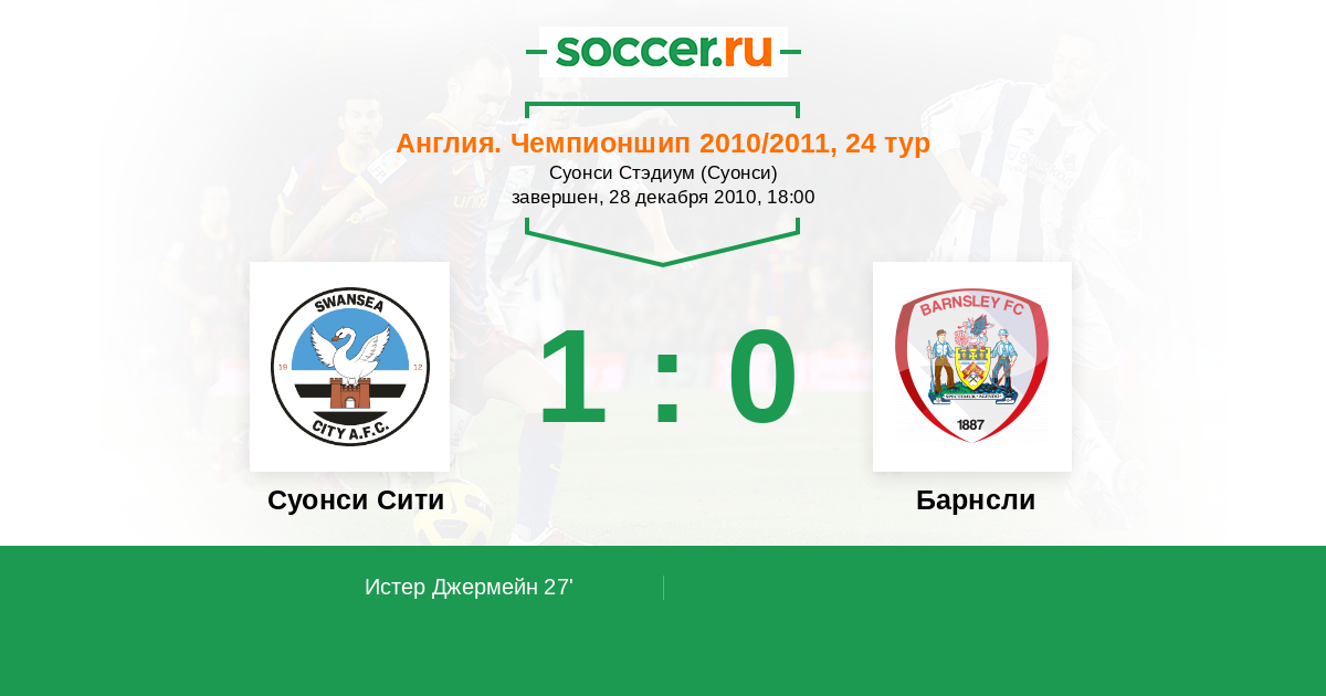 Протокол матча Суонси Сити против Барнсли